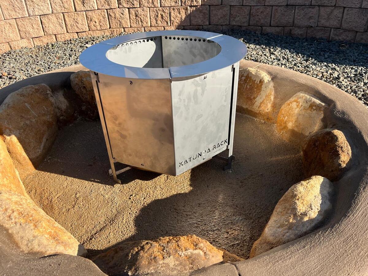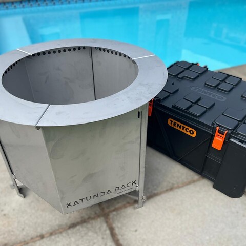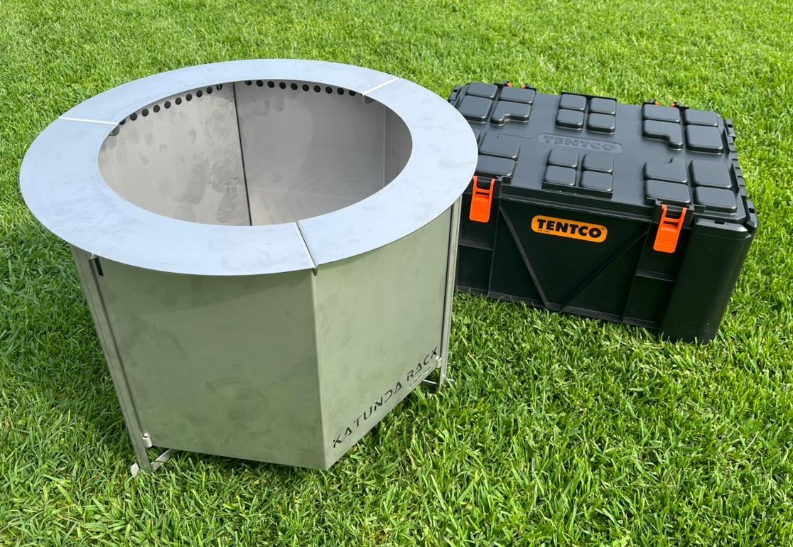 Introducing the KATUNDA RACK firepit, an innovative and portable solution for smokeless outdoor fires. Perfect for camping, overlanding trips or just in the garden, the double combustion system burns off all smoke making a superbly hot, clean fire to sit around and enjoy with friends.